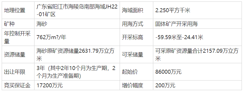 15.7億起拍!年開(kāi)采量超1400萬(wàn)方,廣東陽(yáng)江同日出讓兩個(gè)海砂大礦
