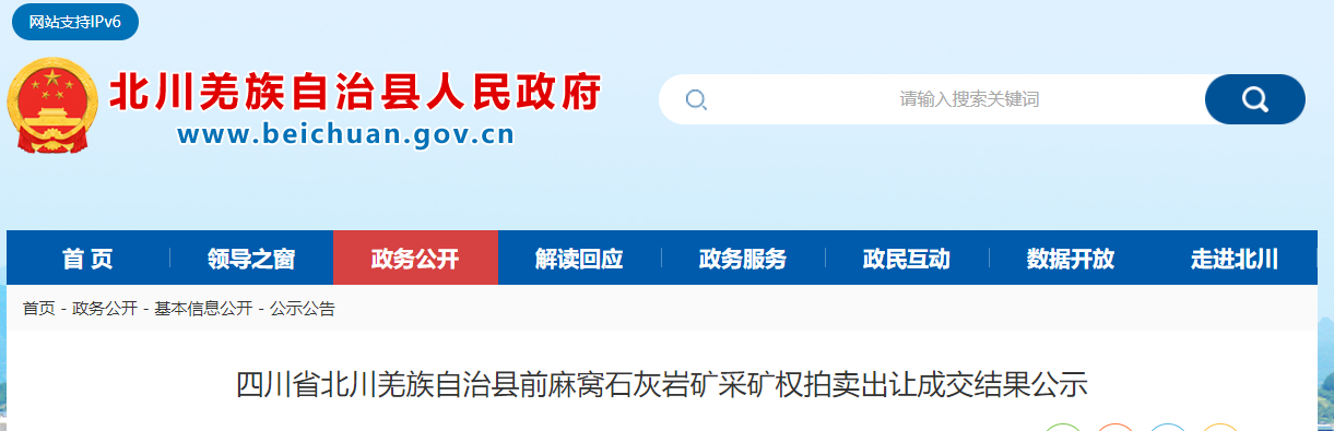 近日,四川民企綿陽金石精誠新材料有限公司以29732萬元競得四川省北川羌族自治縣前麻窩石灰巖礦采礦權。礦山開采礦種石灰巖、建筑石料用灰巖、建筑用白云巖。生產規模不低于500萬噸/年,出讓年限21年。