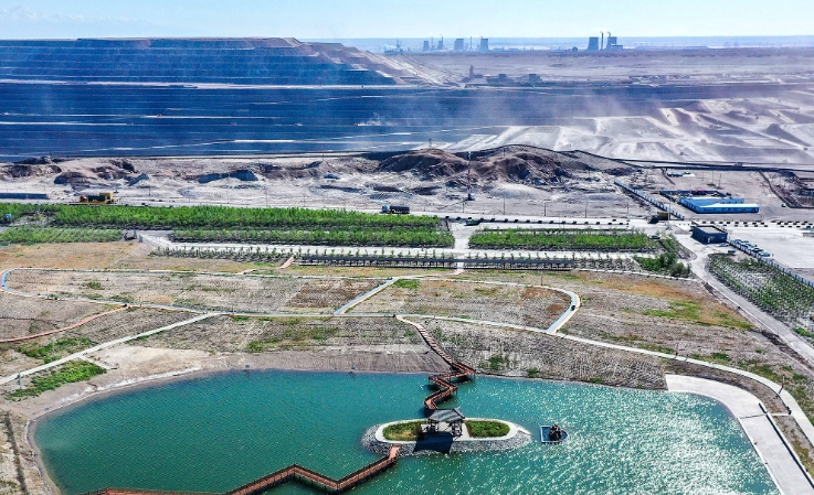 5月7日,位于新疆準東經濟技術開發區的新疆宜化礦業五彩灣露天煤礦綠色礦山一角
