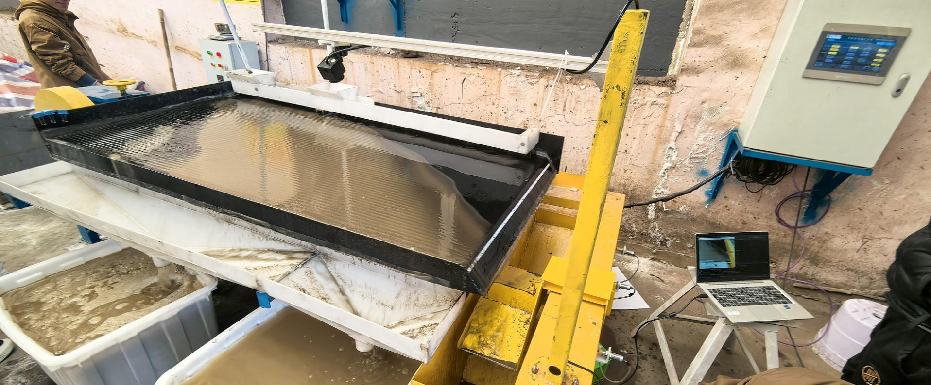 目前,搖床的操作大多依賴工人操作,需要工人觀察礦帶后,依據(jù)經(jīng)驗調(diào)整床面坡度以改變搖床的分選狀態(tài),并調(diào)整精礦截取板的位置至礦帶分離點位置,實現(xiàn)精礦與尾礦的分離。