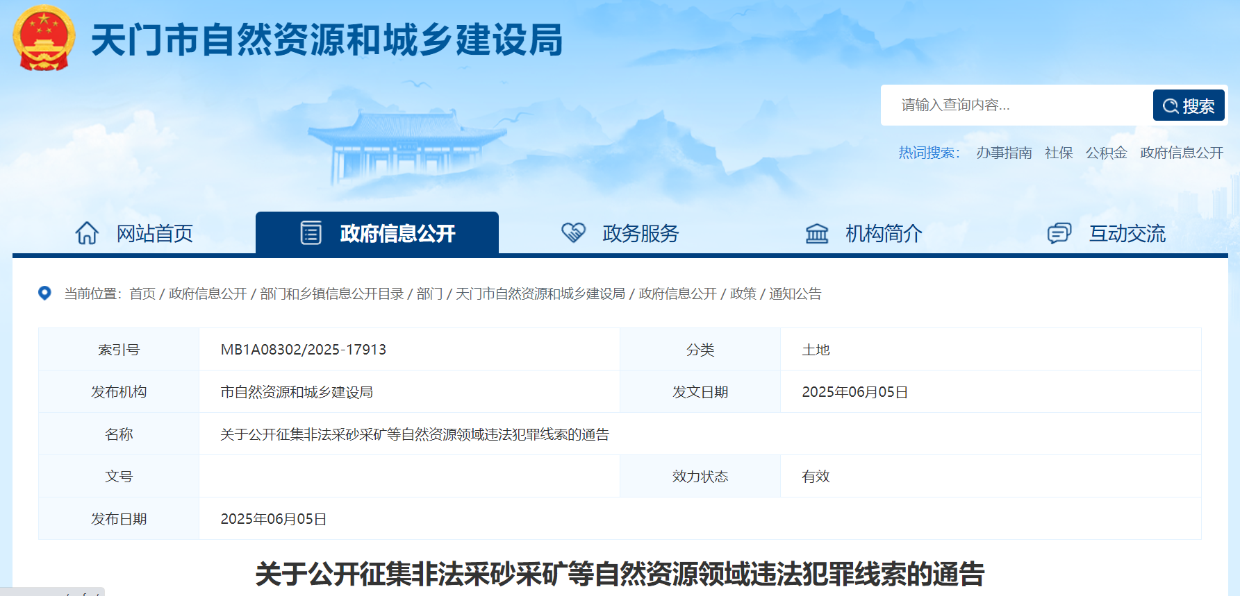 來信寄至天門市陸羽大道西33號天門市自然資源和城鄉建設局,或天門市東湖路83號天門市水利和湖泊局,信封背面注明“線索舉報”等字樣。