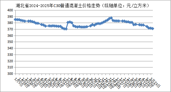 監測數據顯示:5月份,強度等級C30普通混凝土全省均價為:372.08元/立方米,環比下降1.21%,同比下降0.81%。價格走勢情況如下圖: