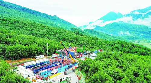 華東油氣南川頁巖氣田石橋1HF井壓裂施工現場