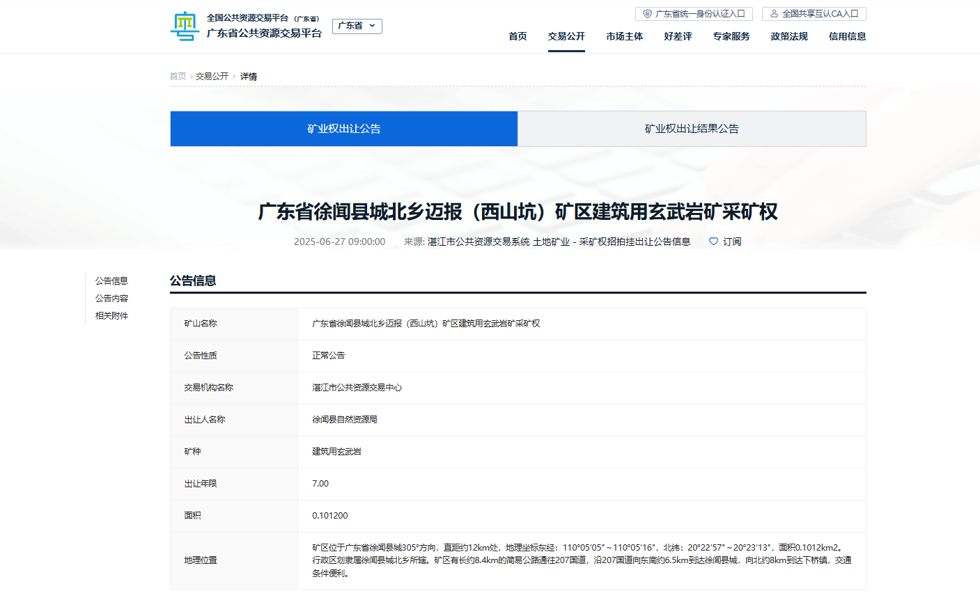 1、礦權掛牌出讓基本情況