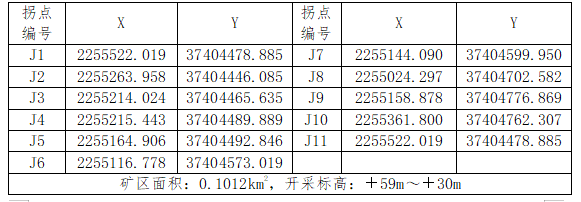 礦權范圍坐標及開采標高: