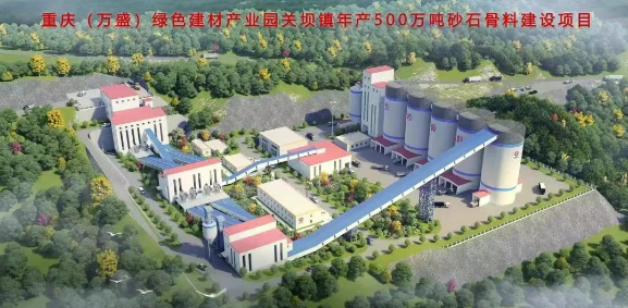 陜渝(重慶)建材科技有限公司副總經(jīng)理李河偉介紹,重慶(萬盛)關(guān)壩鎮(zhèn)年產(chǎn)500萬噸砂石骨料項目由陜渝(重慶)建材科技有限公司承建,位于關(guān)壩鎮(zhèn)田壩村、光明村,總占地面積約1400畝,建設(shè)內(nèi)容包括成品骨料庫5個、機制砂庫1個、中控樓1棟、機制砂樓1棟、檢查篩分車間和成品篩分車間各1個。該項目依托綠色建材產(chǎn)業(yè)園進行生產(chǎn),通過礦山開采剝離的廢石建設(shè)骨料生產(chǎn)線,實現(xiàn)礦山生產(chǎn)零排放、避免開采過程中對地質(zhì)環(huán)境的破壞。而骨料加工過程中剔除的廢棄物可以作為水泥生產(chǎn)線的原材料,變廢為寶。該項目建成后,預(yù)計年產(chǎn)砂石骨料500萬噸、實現(xiàn)年產(chǎn)值約2.2億元。