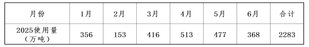 表2:2025上半年本市建設(shè)用石月度使用量情況表