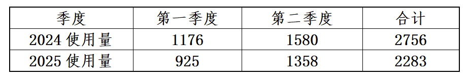 表1:2024、2025一、二季度本市建設(shè)用石使用量情況表