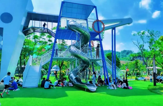 經過幾年的努力,金石山新增林地220余畝、草地360余畝,植被覆蓋率大幅提升,生態環境得到了極大改善。精心打造了24個特色區域,涵蓋親子游樂、地質研學、極限運動等多種業態。其中,100米高空組合塔成為全國最高游樂綜合體,吸引了眾多游客前來挑戰。礦洞體驗館通過展示石灰石開采工藝和歷史文化,讓游客深入了解礦山的前世今生,成為青少年喜愛的科普教育基地。