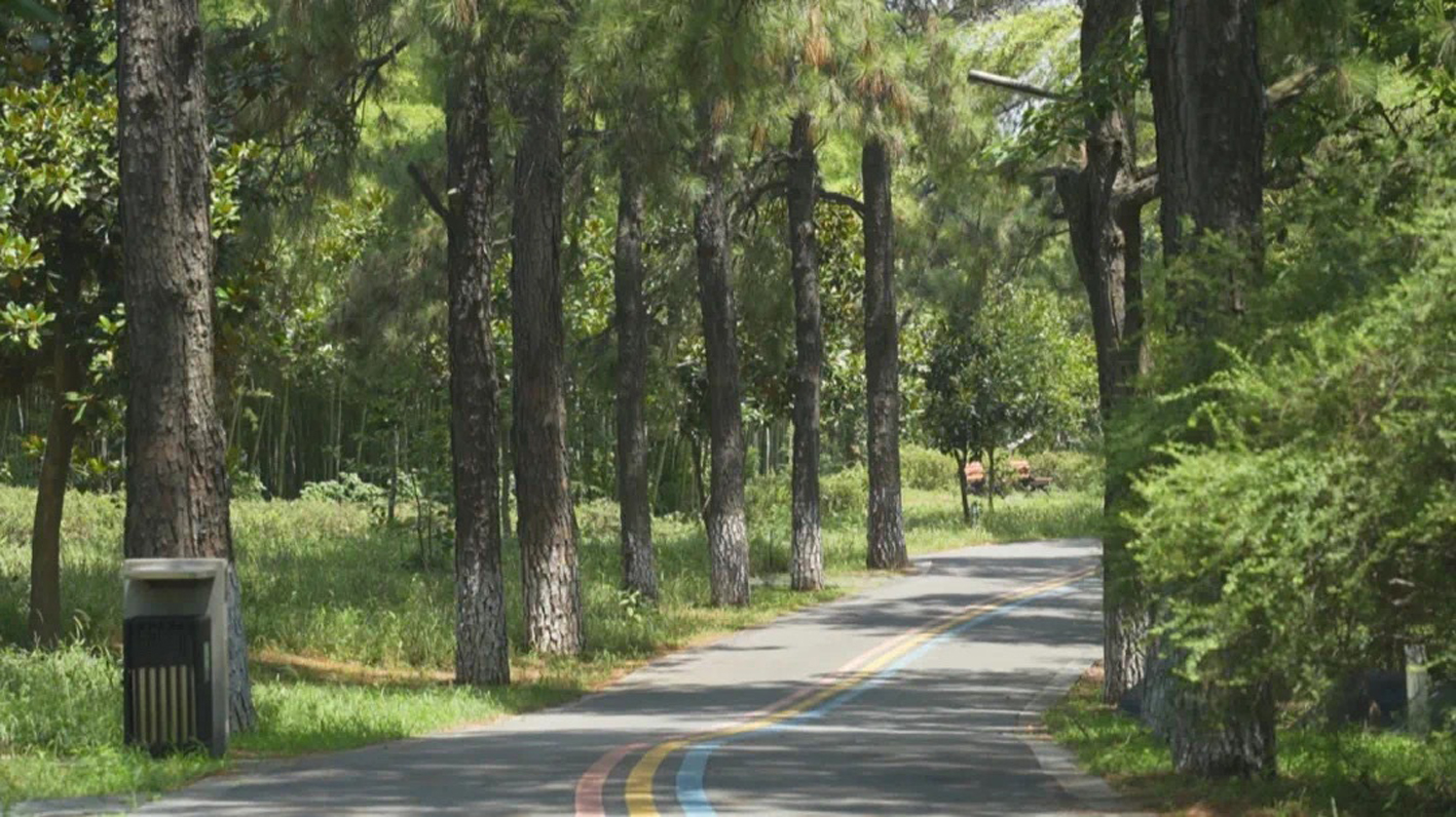 現如今,曾因采石遺留的礦坑已改造為清澈人工湖,配合引進的竹子、茶樹等植被形成的千畝竹海景觀,現已成為騎行攝影愛好者的勝地。