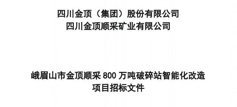 近期,四川金頂順采礦業(yè)有限公司《峨眉山市金頂順采800萬(wàn)噸破碎站智能化改造項(xiàng)目》進(jìn)行競(jìng)爭(zhēng)性招標(biāo)(如有疑問(wèn)可聯(lián)系:0833-6171238)。