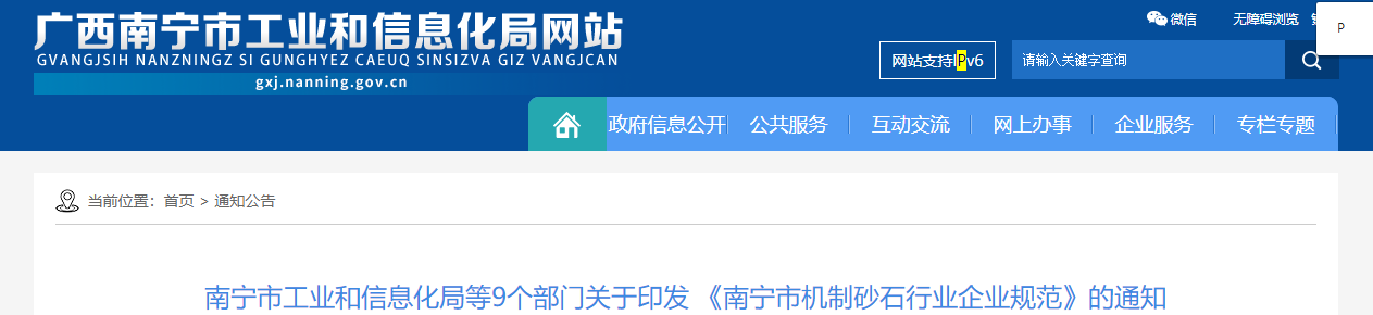 近日,南寧市工業(yè)和信息化局聯(lián)合市自然資源局、市生態(tài)環(huán)境局等9個(gè)部門聯(lián)合印發(fā)《南寧市機(jī)制砂石行業(yè)企業(yè)規(guī)范》(以下簡(jiǎn)稱《規(guī)范》),旨在推進(jìn)機(jī)制砂石行業(yè)供給側(cè)改革,全面提升行業(yè)綠色..