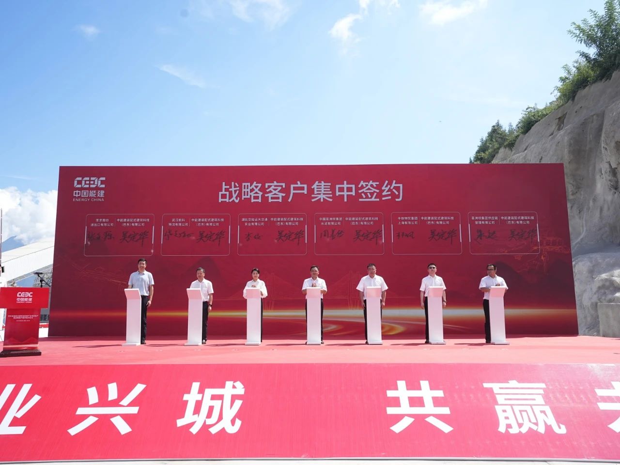 現(xiàn)場,中能建巴東公司與葛洲壩、湖北交投等公司進行簽約。