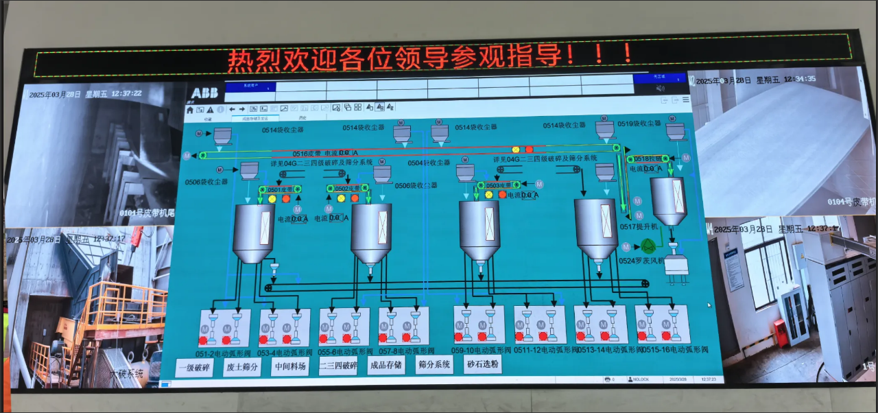 據了解,漢都礦業將“資源集約、安全環保、企地和諧”理念貫穿于曹家灣礦山項目全過程。礦區采用自上而下分臺階開采方式,邊坡及時復綠,生產加工區采用滾軸篩除土、顎破頭破、圓錐破二三破、立軸沖擊式整形機整形,加工系統采用“三段一閉路”干法工藝,破碎、篩分均在封閉鋼結構廠房內進行,同時配備必要的干法布袋除塵系統,成品及半成品儲存在密閉的儲料罐內,產品發運采用智能裝車系統,生產工藝先進,管理科學。
