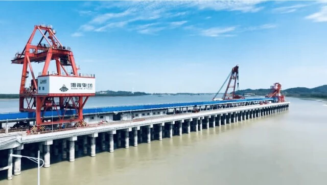 浩吉鐵路重要配套工程——岳陽(yáng)鐵水集運(yùn)煤炭?jī)?chǔ)備項(xiàng)目,涵蓋碼頭、儲(chǔ)備基地和鐵路專(zhuān)用線(xiàn)三大工程,由湖南能源集團(tuán)所屬岳陽(yáng)鐵水集運(yùn)煤炭?jī)?chǔ)備有限公司承建,總投資54.67億元,于2021年3月開(kāi)工。其中,碼頭一期工程已于2023年投運(yùn),儲(chǔ)備基地一期工程儲(chǔ)運(yùn)煤系統(tǒng)于今年7月重載調(diào)試成功。