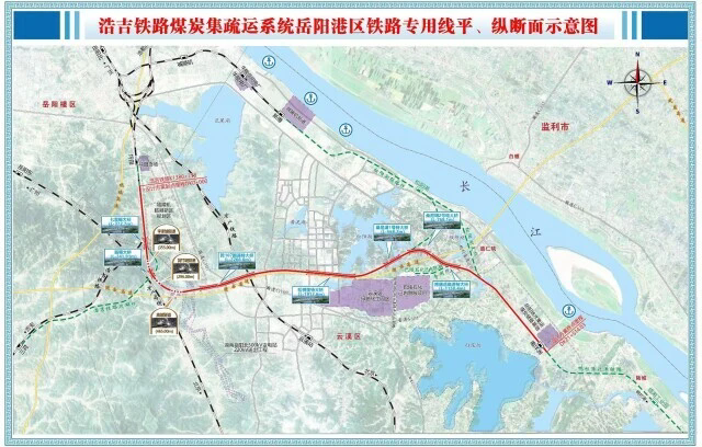 (浩吉鐵路煤炭集疏運(yùn)系統(tǒng)岳陽(yáng)港區(qū)鐵路專(zhuān)用線(xiàn)平、縱斷面示意圖。通訊員供圖)