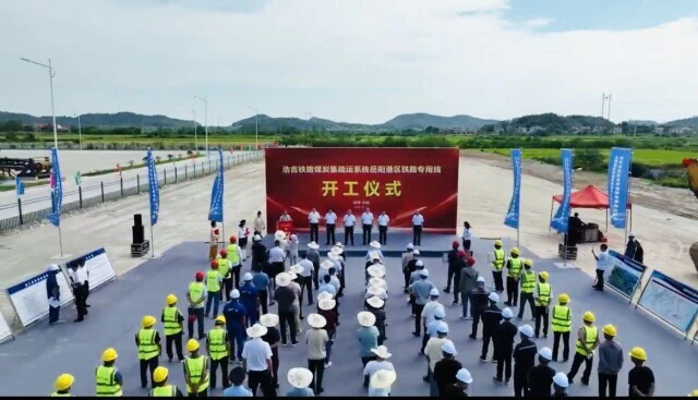 (浩吉鐵路煤炭集疏運(yùn)系統(tǒng)岳陽(yáng)港區(qū)鐵路專(zhuān)用線(xiàn)工程開(kāi)工現(xiàn)場(chǎng)。)