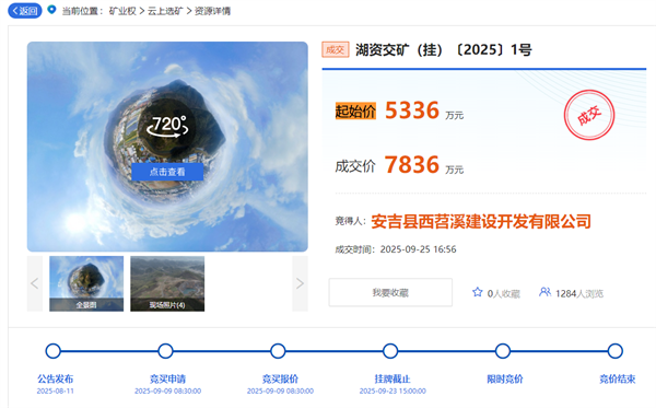 據(jù)浙江省自然資源網(wǎng)上交易中心消息,浙江省安吉縣孝豐鎮(zhèn)橫柏村建筑石料用灰?guī)r礦已于近日成功出讓。該項(xiàng)目出讓資源總量645.3萬(wàn)噸,安吉縣西苕溪建設(shè)開(kāi)發(fā)有限公司經(jīng)51輪競(jìng)價(jià),最終以7836萬(wàn)元競(jìng)得該采礦權(quán)。此外,競(jìng)得人還須支付政策處理費(fèi)約3569.2萬(wàn)元,加上額外需支付的費(fèi)用,該項(xiàng)目折合資源價(jià)款約為17.7元/噸。