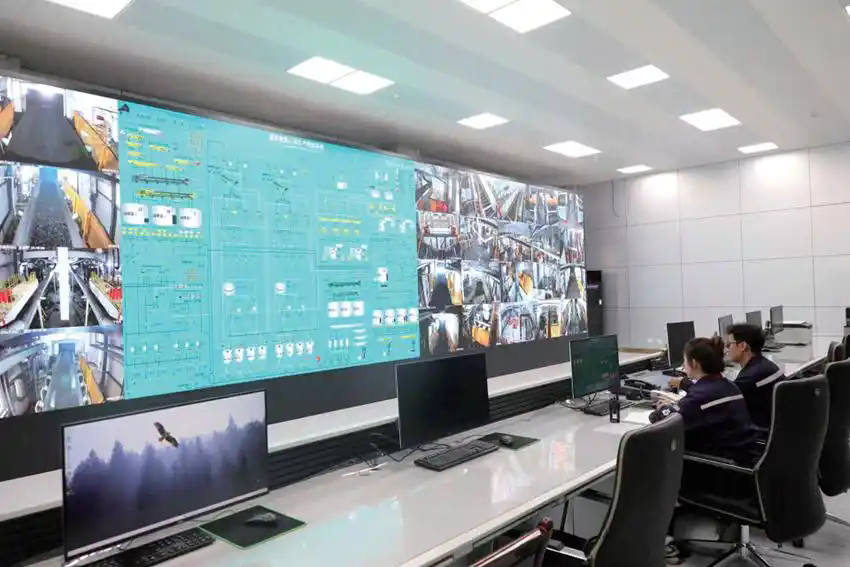 9月28日,在華亭煤業(yè)集團有限責任公司千萬噸智能化選煤廠生產調度指揮中心,兩名工作人員正密切察看設備運行情況。   該選煤廠是華煤集團踐行“碳達峰、碳中和”目標的煤炭清..