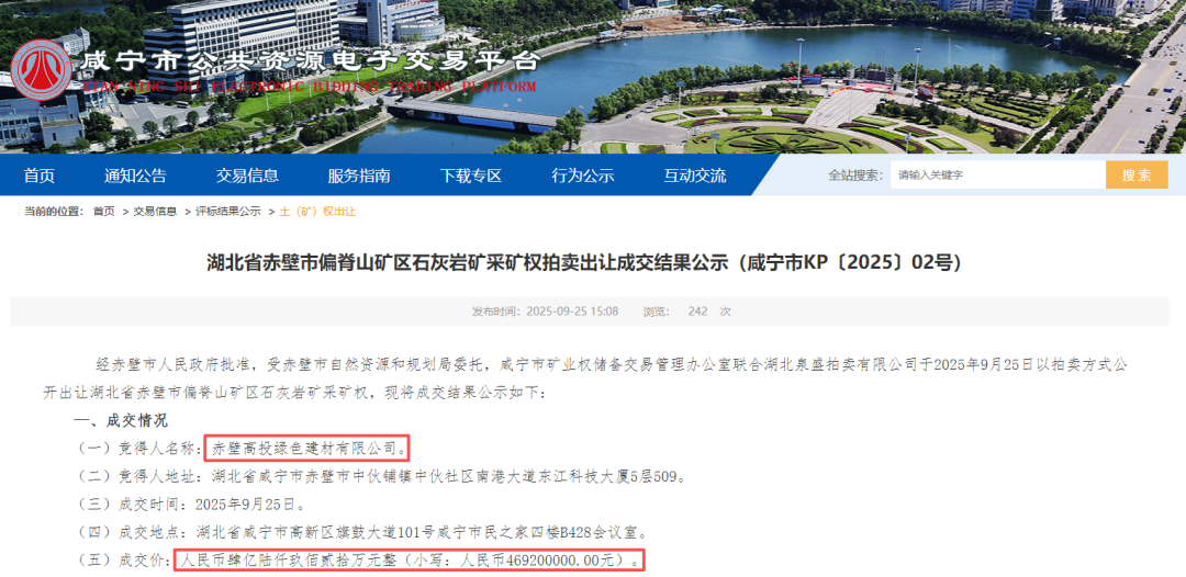 近日,湖北省赤壁市偏脊山礦區(qū)石灰?guī)r礦采礦權成功出讓。當?shù)貒蟪啾诟咄毒G色建材有限公司以46920萬元元成功競得該礦權。