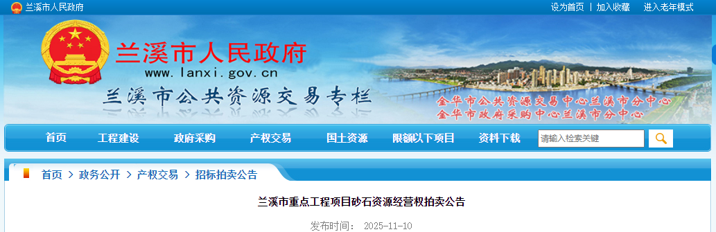 11月10日,浙江萬(wàn)江拍賣(mài)有限公司發(fā)布拍賣(mài)公告,受相關(guān)單位委托,定于2025年11月18日16時(shí),在蘭溪市公共資源交易中心(振興路500號(hào)行政服務(wù)中心四樓),對(duì)蘭溪市重點(diǎn)工程項(xiàng)目剩余砂石資源10年經(jīng)營(yíng)權(quán)進(jìn)行公開(kāi)拍賣(mài),引發(fā)市場(chǎng)廣泛關(guān)注。