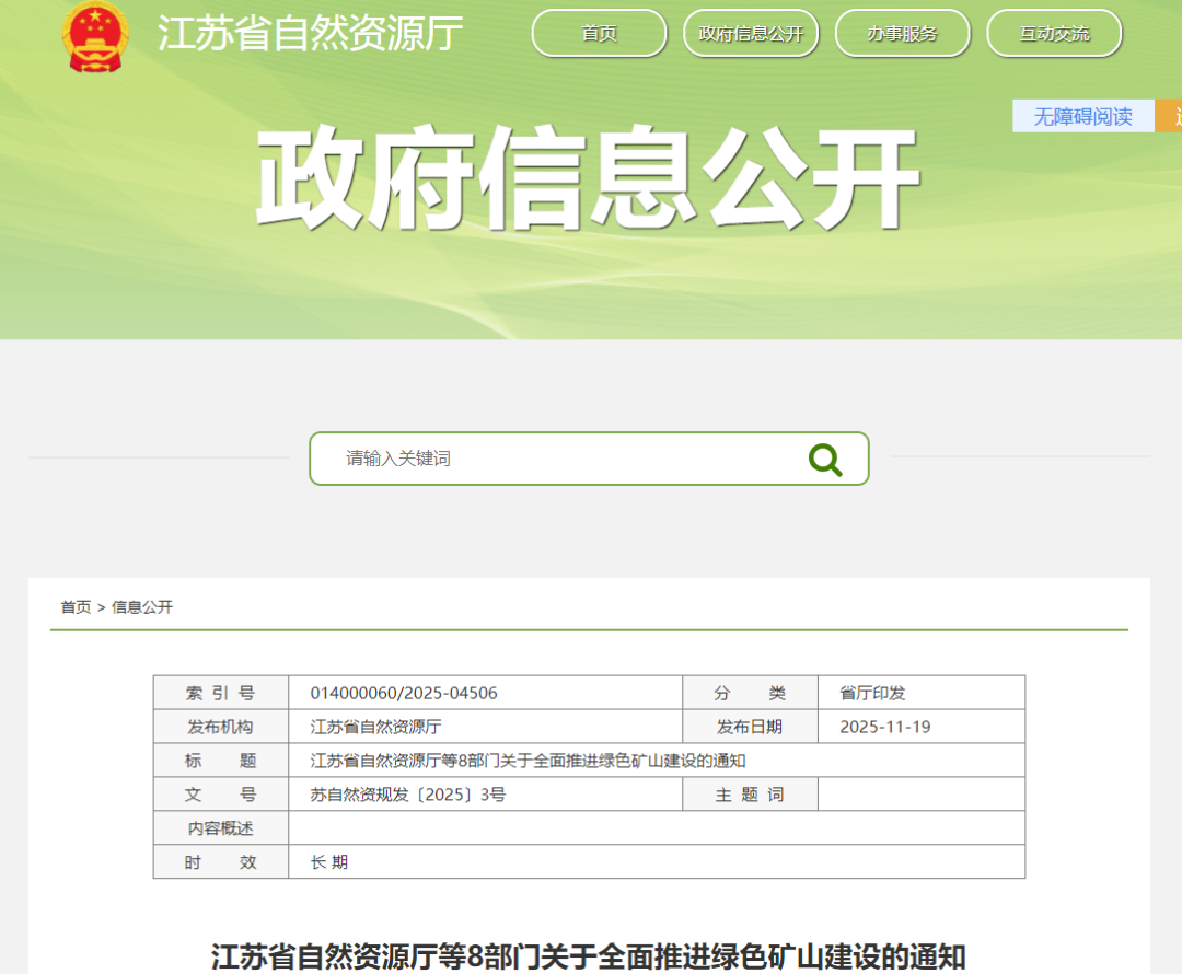 近日,江蘇省自然資源廳聯(lián)合生態(tài)環(huán)境廳、財政廳等8部門聯(lián)合發(fā)布《關于全面推進綠色礦山建設的通知》(以下簡稱《通知》),明確提出2028年全省90%生產礦山達到綠色礦山標準、2030年實現全覆蓋的剛性目標。這一政策紅利精準輻射砂石行業(yè),為長期以來面臨生態(tài)環(huán)保壓力的砂石礦山提供了明確轉型路徑,標志著江蘇砂石行業(yè)將告別“粗放開采、污染嚴重”的傳統(tǒng)模式,邁入“生態(tài)優(yōu)先、高效利用”的綠色發(fā)展新階段。