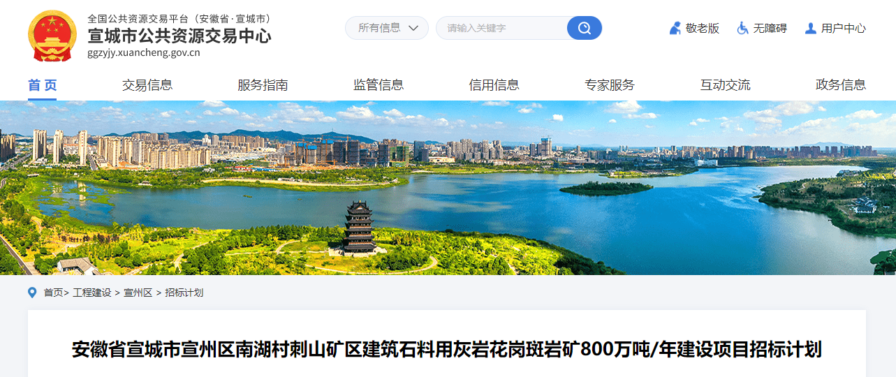 近日,安徽宣城公告資源交易中心發(fā)布宣州區(qū)南湖村刺山礦區(qū)建筑石料用灰?guī)r花崗斑巖礦800萬噸/年建設(shè)項(xiàng)目招標(biāo)公告,招標(biāo)人是宣城市宣州區(qū)國(guó)投第二礦業(yè)有限公司,項(xiàng)目招標(biāo)范圍包括項(xiàng)目的設(shè)計(jì)、采購(gòu)、施工、生產(chǎn)開拓與開采加工及運(yùn)營(yíng)。