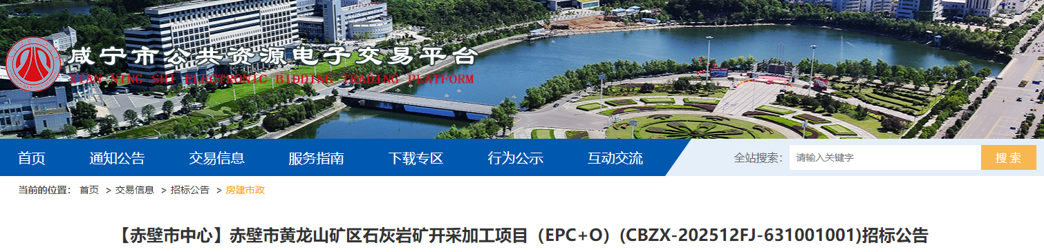 近日,湖北省咸寧市公共資源電子交易平臺發(fā)布赤壁市黃龍山礦區(qū)石灰?guī)r礦開采加工項目(EPC+O)招標(biāo)公告,此次招標(biāo)共劃分1個標(biāo)段,建設(shè)工期為18個月 ,其中設(shè)計為60天。綜合運(yùn)營期180個月。合同估算價為180248.66萬元。投標(biāo)截止時間為2025年12月26日。