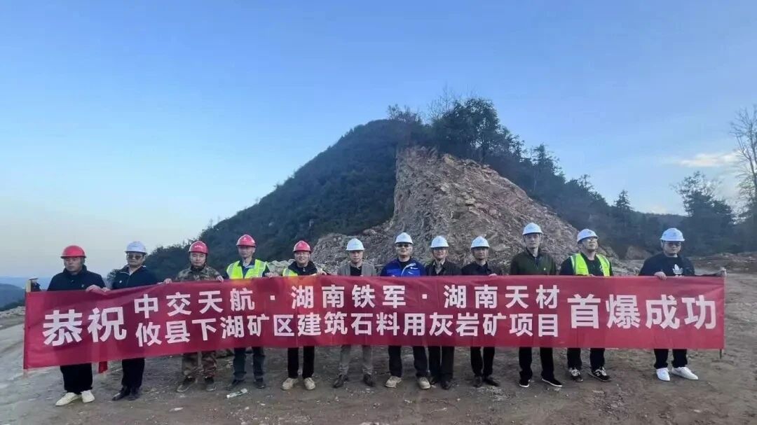12月15日,中交天航、湖南鐵軍、湖南天材攸縣下湖礦區(qū)建筑石料用灰?guī)r礦項目順利完成首次爆破。