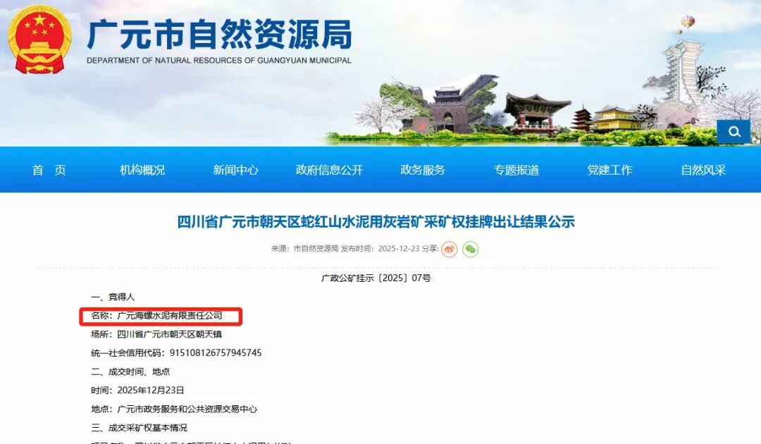 12月16日,河北省保定市自然資源和規(guī)劃局(林業(yè)局)披露的信息顯示,唐縣冀東水泥有限責(zé)任公司以3765.31萬(wàn)元競(jìng)得白合水泥灰?guī)r礦周邊資源采礦權(quán),曲陽(yáng)金隅水泥有限公司則以8117.85萬(wàn)元拿下野北礦區(qū)水泥用灰?guī)r礦整合區(qū)新增資源采礦權(quán)。12月5日,華潤(rùn)水泥(封開(kāi))有限公司以 2.563 億元競(jìng)得廣東省封開(kāi)縣河兒口鎮(zhèn)大旺塘礦區(qū)水泥用石灰?guī)r礦采礦權(quán)。該礦區(qū)面積 0.79 平方千米,出讓年限 11.5 年,截至2025年8月1日,查明保有水泥用石灰?guī)r礦資源量 8821.6 萬(wàn)噸,其中控制資源量8343.8萬(wàn)噸,推斷資源量477.8萬(wàn)噸。