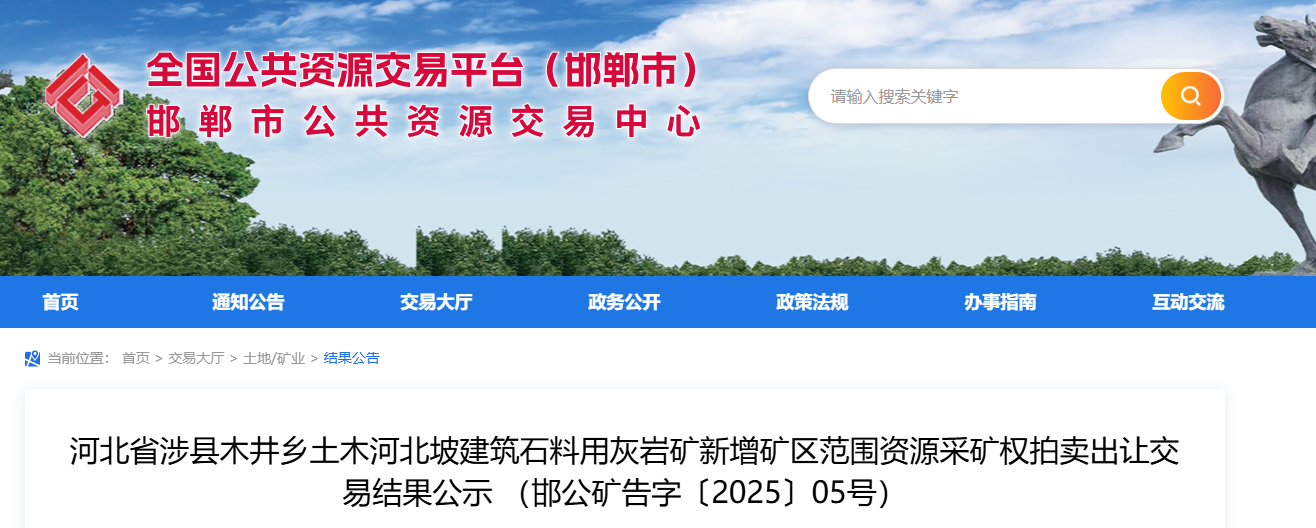 近日,河北啟創(chuàng)瑞景建材科技有限公司以11.41億元成功競(jìng)得涉縣木井鄉(xiāng)土木河北坡建筑石料用灰?guī)r礦新增礦區(qū)采礦權(quán)。該礦區(qū)出讓資源量1670.01萬(wàn)方(約4500萬(wàn)噸),生產(chǎn)規(guī)模約240萬(wàn)噸/年,出讓年限18.9年,起始價(jià)4270萬(wàn)元,溢價(jià)率高達(dá)2570%。經(jīng)計(jì)算單價(jià)約25元/噸。