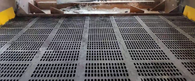 檢查篩分一臺(tái)2460雙層圓振篩篩網(wǎng)改造為美卓Trellex® 橡膠篩板。堵孔率從50%降至0,篩分效率從60%提高到90%以上,篩板使用壽命延長(zhǎng)2倍。