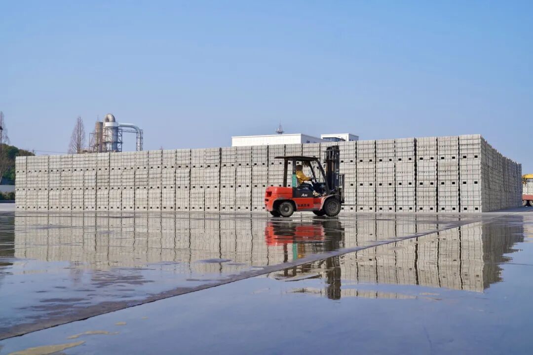走進(jìn)同德,開闊的場地上,一摞摞打包整齊的混凝土實(shí)心磚、空心磚高高壘起。這些再生環(huán)保建材,將被送往杭州、安徽、江蘇等地,融入市政、水利、交通等基礎(chǔ)設(shè)施中。
