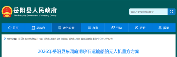 2026年4月22日開始報名,4月26日起,在岳陽縣東洞庭湖鹿角水域逐船開展量方工作,實行空船建模,建模后將不定期復核。