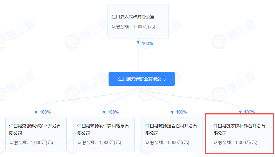 從股權結構來看,江口縣礫安建材砂石開發有限公司由江口縣梵安礦業有限公司100%持股;而江口縣梵安礦業有限公司為江口縣人民政府辦公室100%出資設立的國有獨資企業,注冊資本1000萬元,形成了清晰的地方國資控股體系。作為江口縣屬國有礦業平臺,江口縣梵安礦業有限公司已通過全資控股模式,先后設立江口縣溪眠黔坳礦產開發有限公司、江口縣梵嶺嶼恒建材貿易有限公司、江口縣梵嶺璟巖石材開發有限公司及本次新成立的江口縣礫安建材砂石開發有限公司,構建起覆蓋礦產開發、建材貿易、石材加工、砂石開發的全鏈條產業矩陣。
