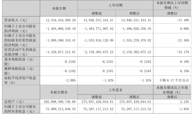 2026年4月27日,天山股份發布一季度業績報告。數據顯示,公司在報告期內實現營業收入123.34億元,較上年同期下降17.48%;歸屬于上市公司股東的凈利潤為-14.95億元(即虧損近15億元)。