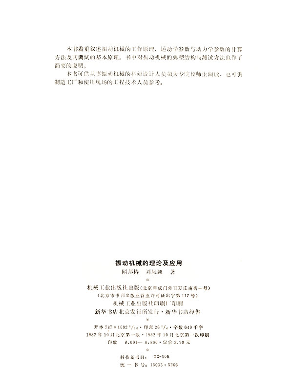 本書初稿曾作為向東北工學(xué)院振動(dòng)機(jī)械研究方向的研究生及有關(guān)單位從事振動(dòng)機(jī)械研究設(shè)計(jì)的科技人員講授的內(nèi)容,在試用過程中進(jìn)行了多次修改與補(bǔ)充。
