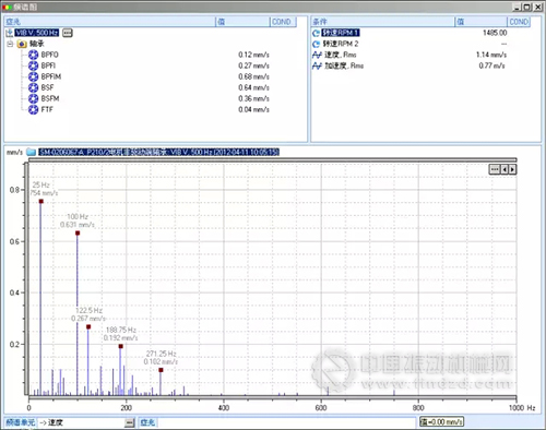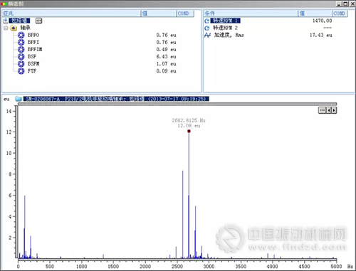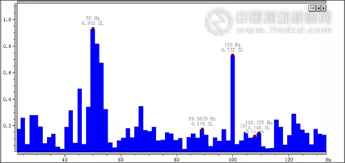 圖5后軸承振動頻譜圖