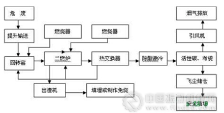 危廢處理行業(yè)針對危險(xiǎn)廢物的特性,使用回轉(zhuǎn)窯加二燃室的工藝,將危險(xiǎn)廢物進(jìn)行高溫分解, 危險(xiǎn)廢物的主要化學(xué)成分范圍:C 12-45%, H 1-9% ,O 2-13%, S 0.1-3%, Cl 0.1-12%, F 0.1-6%, P 0-3%,Si0-15% ,K 0-3% ,Na0-4 % ,V0-0.1%為了防止分解后的產(chǎn)物再次合成有害物質(zhì),需控制二燃室溫度。由于處理的危險(xiǎn)廢物量和危廢物的不同,其熱值不同,會(huì)導(dǎo)致出口煙氣溫度的變化,從而影響余熱鍋爐的出口參數(shù),影響蒸汽品質(zhì)。由于危廢行業(yè)每天處理量波動(dòng)較大,二燃室溫度也隨之變化,煙氣成分與熱值也不固定。一般50t/h的余熱鍋爐出口蒸汽壓力在0.5-1MPa左右,蒸汽流量在4t/h-6t/h之間。