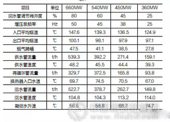 從實(shí)際運(yùn)行來看,在鍋爐負(fù)荷變大的情況下,增大回水管電動(dòng)調(diào)節(jié)閥開度和增壓泵的頻率,供水管道流量增大,余熱利用換熱器出口煙氣溫度和增壓泵出口管道水溫均降低;在鍋爐負(fù)荷變小的情況下,減小回水管電動(dòng)調(diào)節(jié)閥開度和增壓泵的頻率,供水管道流量減小,余熱利用換熱器出口煙氣溫度和增壓泵出口管道水溫均上升。由此通過煙溫調(diào)節(jié)和水溫調(diào)節(jié),使換熱器出口煙氣溫度和換熱器入口溫度保持在恒定的溫度范圍。表1是在機(jī)組不同負(fù)荷下,余熱利用系統(tǒng)運(yùn)行參數(shù)。