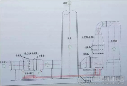 圖1 濕法脫硫塔后增加直接噴淋冷凝凈化系統(tǒng)