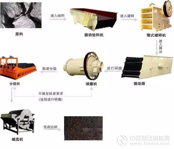 缺水地區(qū),則采用干式磨礦干式磁選,被貧化了富磁鐵礦石或貧磁鐵礦石,一般用干式磁選剔除脈石,前者得到塊狀富礦石;后都經(jīng)磨礦磁選獲得精礦。