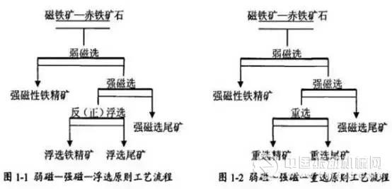 (1)弱磁選與重選、浮選、強磁選聯(lián)合。