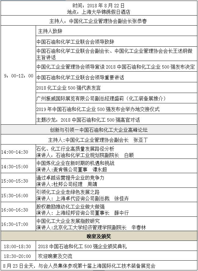 - 上海化工裝備展:8月23日與化工500強約個會!(2018-08-22)