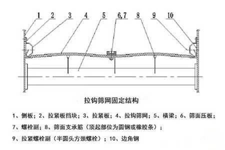 實際生產(chǎn)中,由于工作環(huán)境惡劣,篩網(wǎng)壓板會松動,篩網(wǎng)材料產(chǎn)生塑性變形。運(yùn)行一段時間后,篩網(wǎng)松弛與振動篩鋼梁產(chǎn)生相對振動,當(dāng)相對振動與振動篩本身的振動產(chǎn)生共振時,就會對篩箱和橫梁產(chǎn)生巨大威脅。