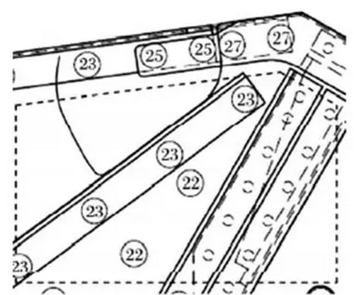 (9)將整理區(qū)域內(nèi)的涂層打磨干凈,然后在側(cè)板和加強(qiáng)板上涂上底漆(均涂在兩側(cè))。將加強(qiáng)板放置在篩子內(nèi)側(cè),并盡量多安裝螺栓,加強(qiáng)板將焊縫修理區(qū)兩側(cè)覆蓋,見(jiàn)圖12。圖中虛線部分為加強(qiáng)板。