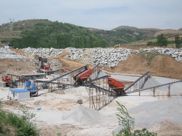 設(shè)計(jì)合理的機(jī)械設(shè)備安裝及石料堆放場地極為重要,根據(jù)地形條件、風(fēng)向,順山勢走向分臺階布置設(shè)備。初碎宜布置在開采方向的最上臺階,二破、篩分設(shè)備布置在下一臺階,成品出料布置在最下面臺階,作到生產(chǎn)與岀料互不干擾,環(huán)保經(jīng)濟(jì)。