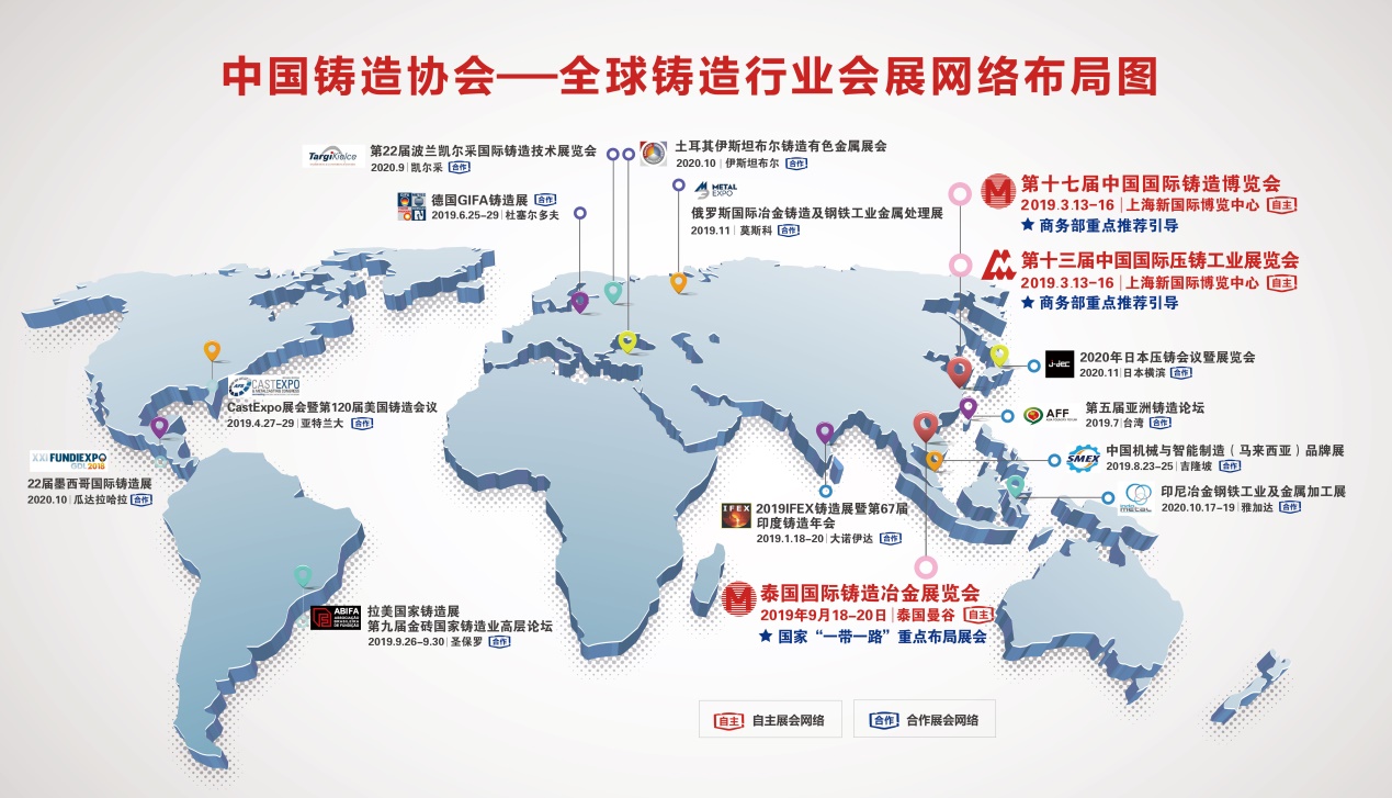 中鑄協(xié)全球鑄造行業(yè)會展網(wǎng)絡(luò)布局圖