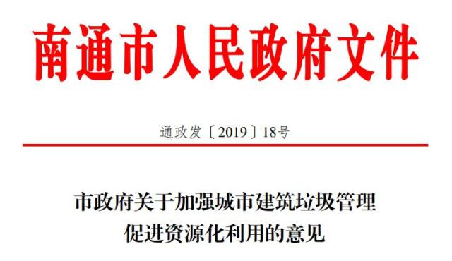 近日,南通市政府下發(fā)《關(guān)于加強(qiáng)城市建筑垃圾管理促進(jìn)資源化利用的意見》,提出——