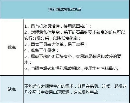 淺孔爆破主要用于生產(chǎn)規(guī)模不大的露天礦或采石場、硐石、隧道掘鑿、二次爆碎、新建露天礦山包處理、山坡露天單壁溝運輸通路的形成及其它一些特殊爆破。